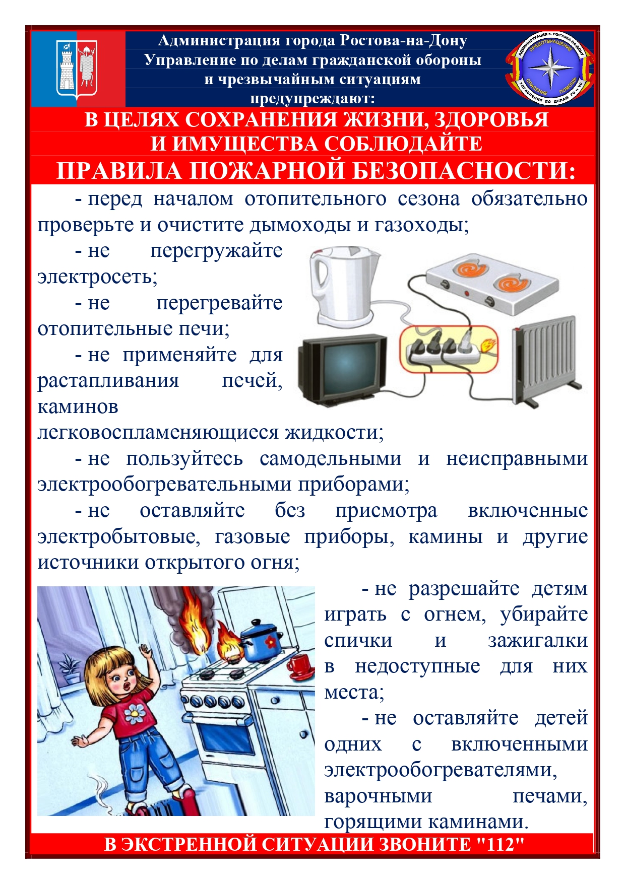 Уважаемые родители! Наступили летние каникулы – пора отдыха, интересных дел, новых впечатлений. У наших детей появилось больше свободного времени. Но, к сожалению, в этот период увеличивается число чрезвачайных происшествий с детьми: на дорогах, на воде, вблизи железнодорожных путей и т.д. Управление образования города Ростова-на-Дону просит вас провести с детьми индивидуальные беседы, объяснив важные правила, соблюдение которых поможет сохранить жизнь; решите проблему свободного времени детей. Дети отдыхают, играют, купаются, загорают, придумывают различные забавы, находясь на водоемах. Но далеко не всегда мы осознаем, насколько опасна водная среда для человека, поэтому, не разрешайте детям самостоятельно находиться у воды. Обратите внимание детей на наиболее распространенные случаи пожаров из-за неосторожного обращения с огнем: детская шалость с огнем; непотушенные угли, шлак, зола, костры; короткое замыкание, эксплуатация электротехнических устройств, бытовых приборов, печей. Напоминайте детям о правилах дорожного движения, научите их быть предельно внимательными на дороге и в общественном транспорте. Постоянно будьте в курсе, где и с кем ваш ребенок, контролируйте место пребывания детей. Не разрешайте разговаривать с незнакомыми людьми. Постоянно объясняйте своим детям, что нельзя пускать в дом незнакомых людей. Убедитесь, что ваши дети знают телефон полиции, скорой помощи, пожарной службы, свой домашний адрес. Убедите ребенка, что вне зависимости от того, что произошло, вы должны знать о происшествии. Помните о защите детей от информации, причиняющей вред их здоровью и развитию. Подключаясь к сети Интернет, ваш ребенок встречается с целым рядом угроз, о которых он может даже и не подозревать. Не оставляйте детей без контроля взрослых! Всегда знайте, где ваши дети, и они пусть всегда знают, где вы. Всегда записывайте адреса и телефоны всех друзей вашего ребенка, а также телефоны (рабочие и мобильные) их родителей. Уважаемые родители!